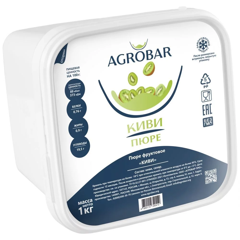 Иногда киви называют китайским крыжовником. Своим современным названием киви обязан новозеландскому селекционеру А. Эллисону, который назвал фрукт в честь одноимённой новозеландской птички из-за внешнего сходства. Состав: киви, сахар. Срок годности: 12 месяцев при температуре - 18°C. После вскрытия и разморозки хранить не более 3 суток при температуре от 0 до +5°C.