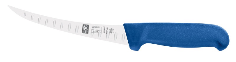 —Нож обвалочный 150/290 мм. изогнутый, гибкое лезвие с бороздками, синий SAFE Icel /1/6/